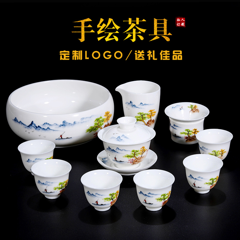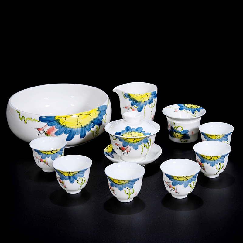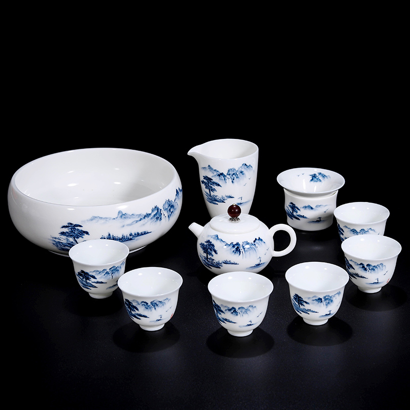 11 pieces of colorful mountain river cup cover bowl Set of 11 pieces of colorful mountain teapot Yangtze mountain teapot 11 pieces of lotus teapot Yangtze tea pot 11 pieces of blue huang mountain tea