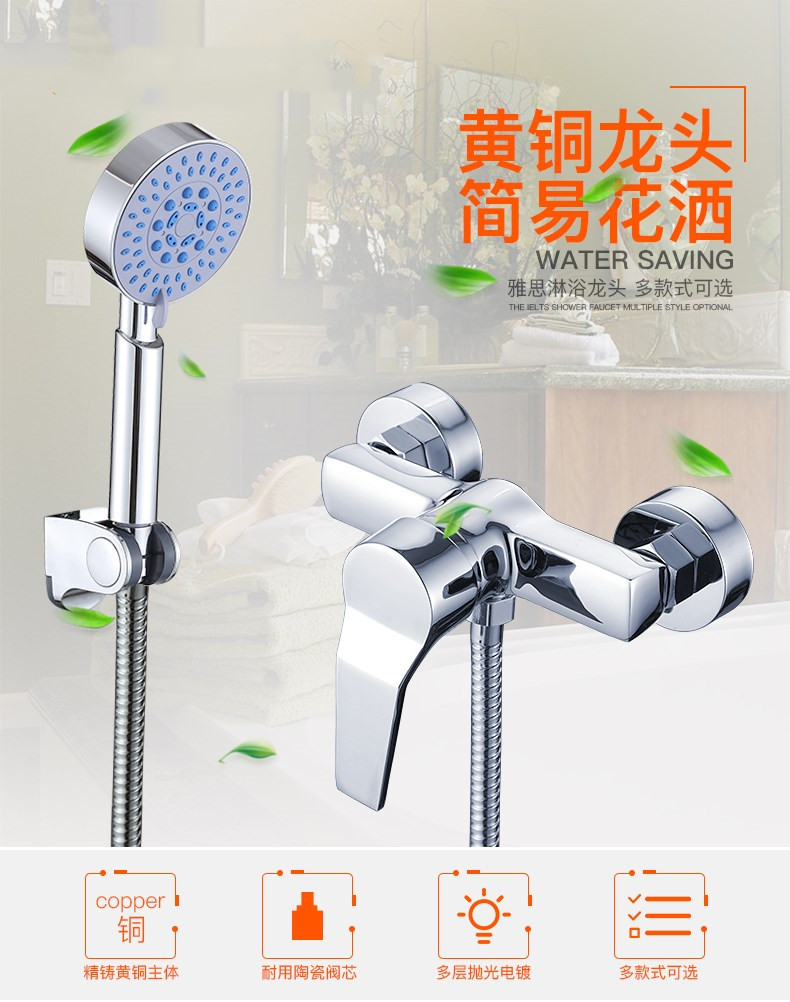 Full copper tap accessories All-copper tap Five-gear shower suit All copper tap 300 holes Pressurized Shower shower suit All copper tap green Three-stop shower suit All-copper tap Space aluminum shower head suit All copper