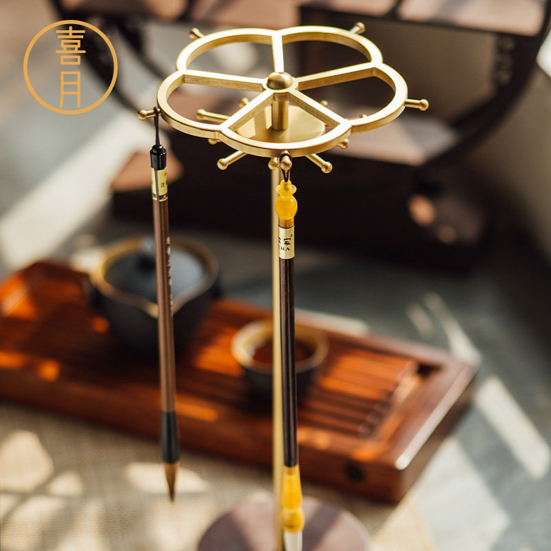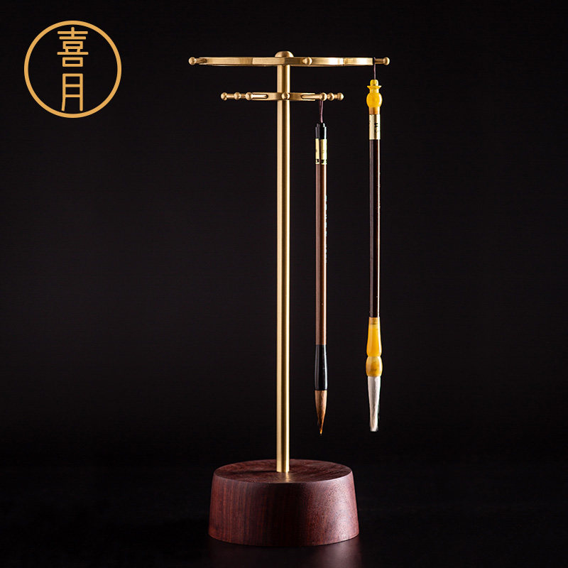 Xiyue round brush holder mahogany pure copper pen hanging solid wood trumpet simple adult creative new Chinese style gift decoration