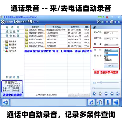 Unlimited recording with computer Built-in 16G 1000 hours of calls
