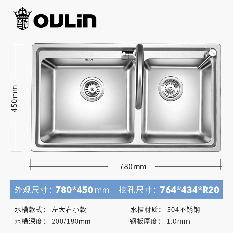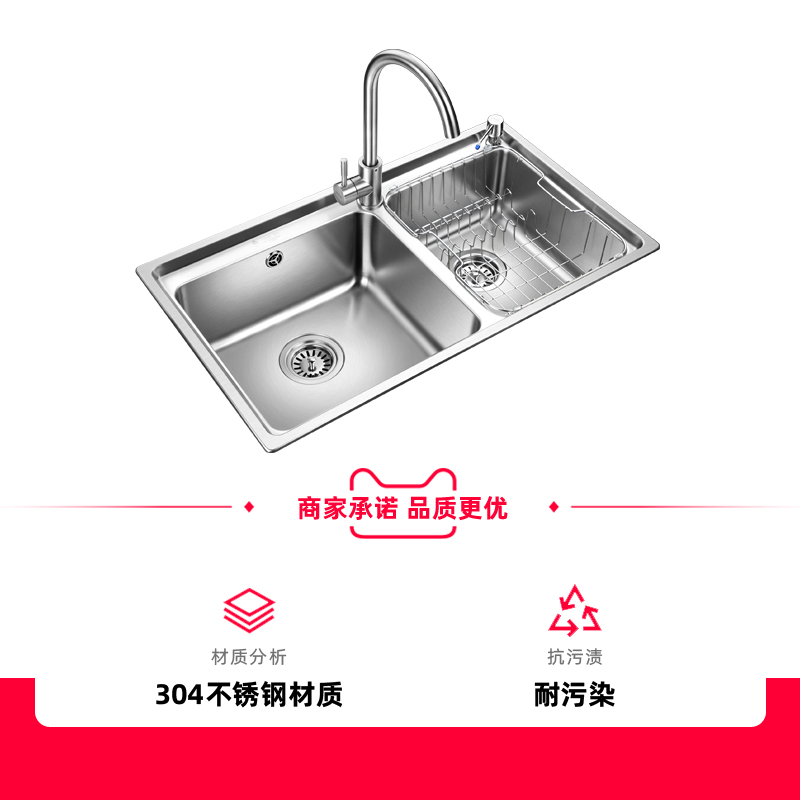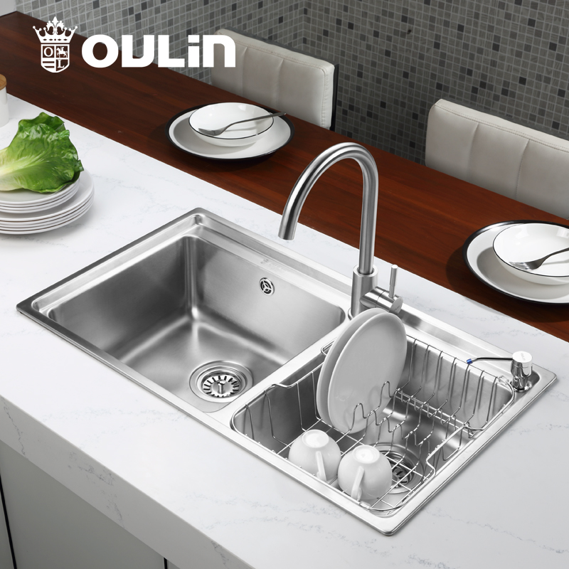 Ou Lin Kitchen sink double sink set 304 stainless steel wash basin Water basin deepening thickening sink sink sink sink