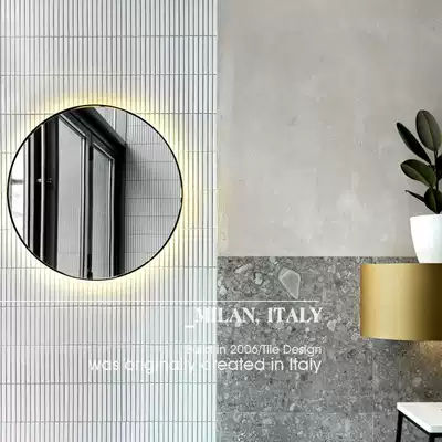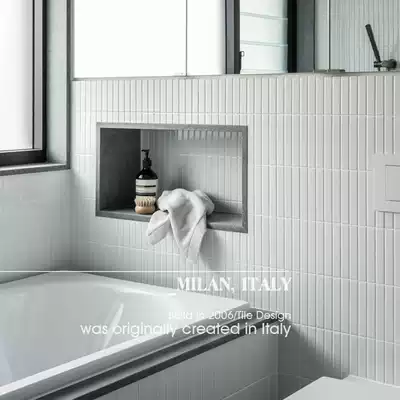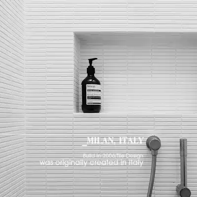 White tile background wall Modern Nordic powder room mosaic tile small elongated strip all-ceramic floor tile green brick