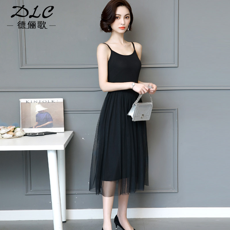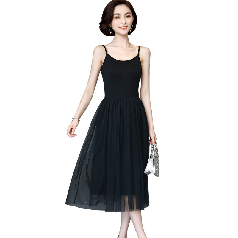 Suspender dress women's spring and summer new inner mesh skirt Modal yarn skirt Wear black thin base skirt