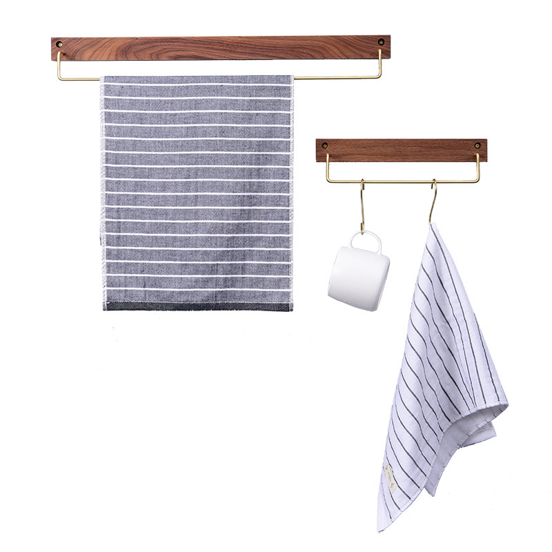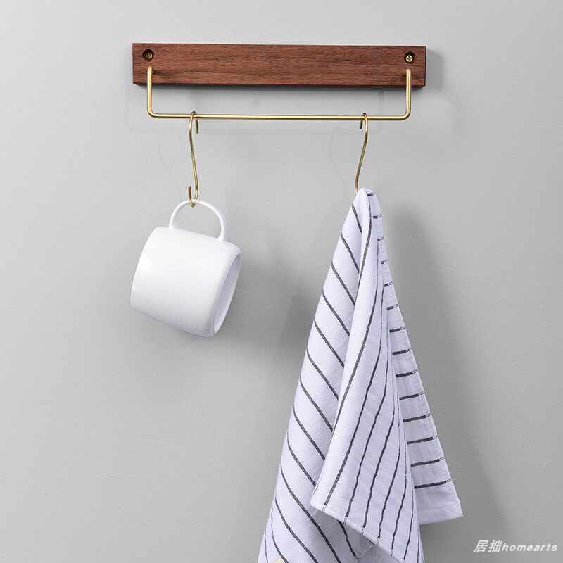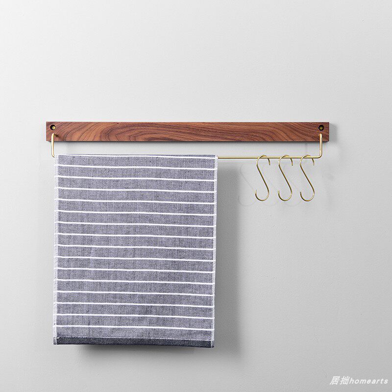 home net red Nordic retro towel rack Black walnut brass hook towel rack Solid wood shelf