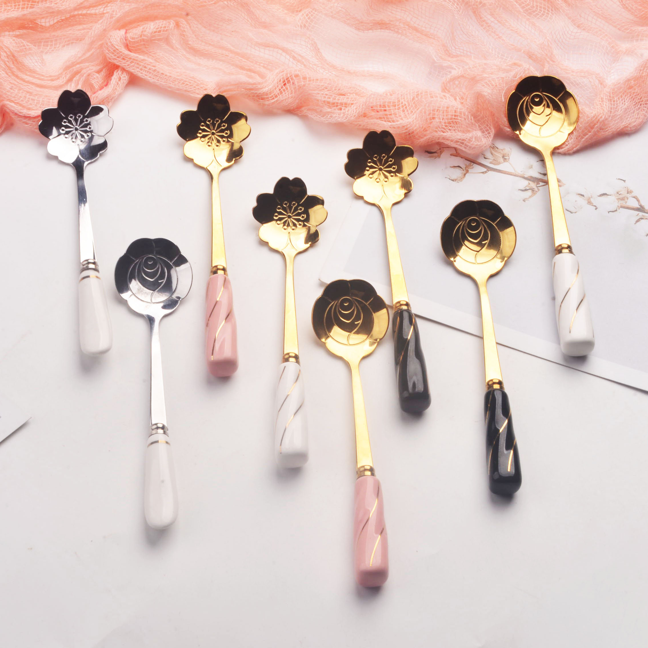 Pink Gold Cherry Blossom Small Spoon Black Gold Cherry Blossom Small Spoon Platinum Cherry Blossom Small Spoon Silver Cherry Blossom Small Spoon Pink Gold Rose Small Spoon Black Gold Rose Small Spoon Platinum Rose Small Spoon Silver Rose Small Spoon