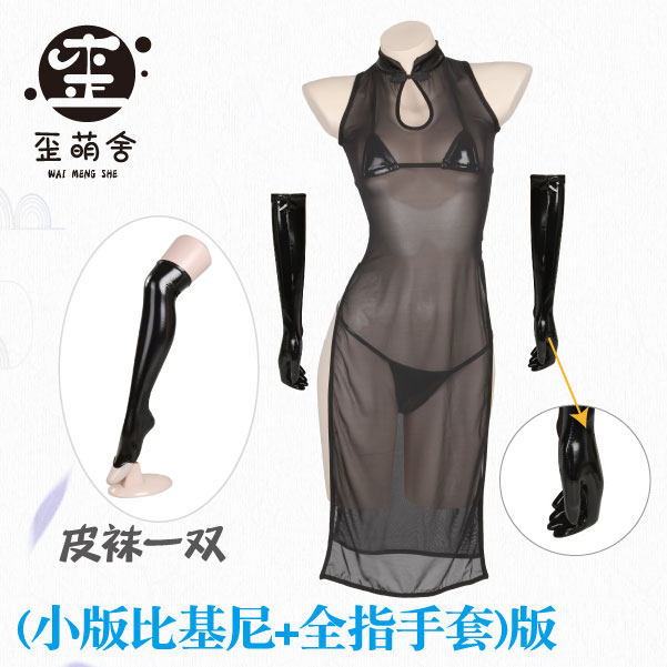 Single mesh cheongsam mesh cheongsam large version patent leather bikini full finger leather gloves 70CM leather socks mesh cheongsam large version patent leather bikini full finger leather gloves 78CM leather socks mesh cheongsam cheongsam