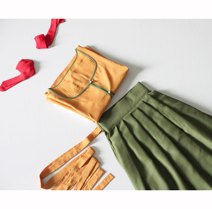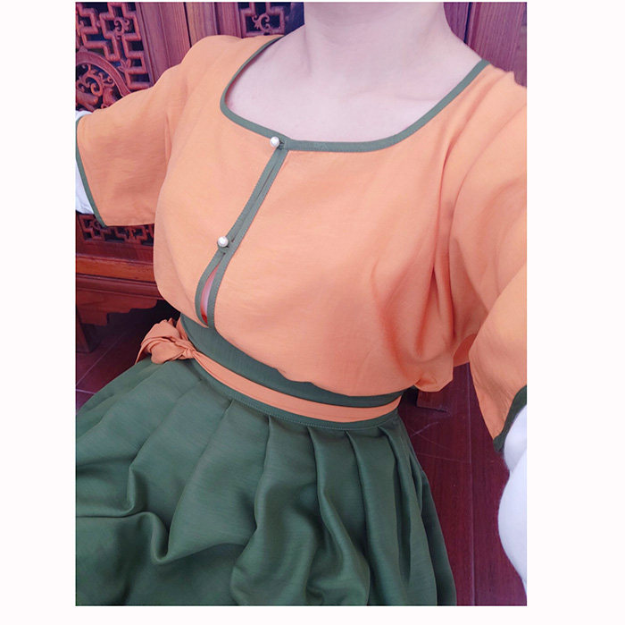 Hanfeng Jinxiu handmade mother-in-law Hanfu three-piece set female DIY full set of orange tops custom-made Hanfu