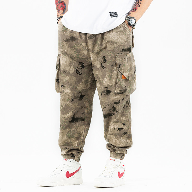 Plus size camouflage cargo pants men's pants Velcro loose casual long pants fat fat fat increase leggings 200 pounds