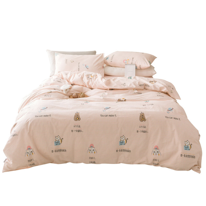 Pink bottom small plaid single girl small fresh cotton twill pure cotton quilt cover one piece bed sheet pillowcase can be customized
