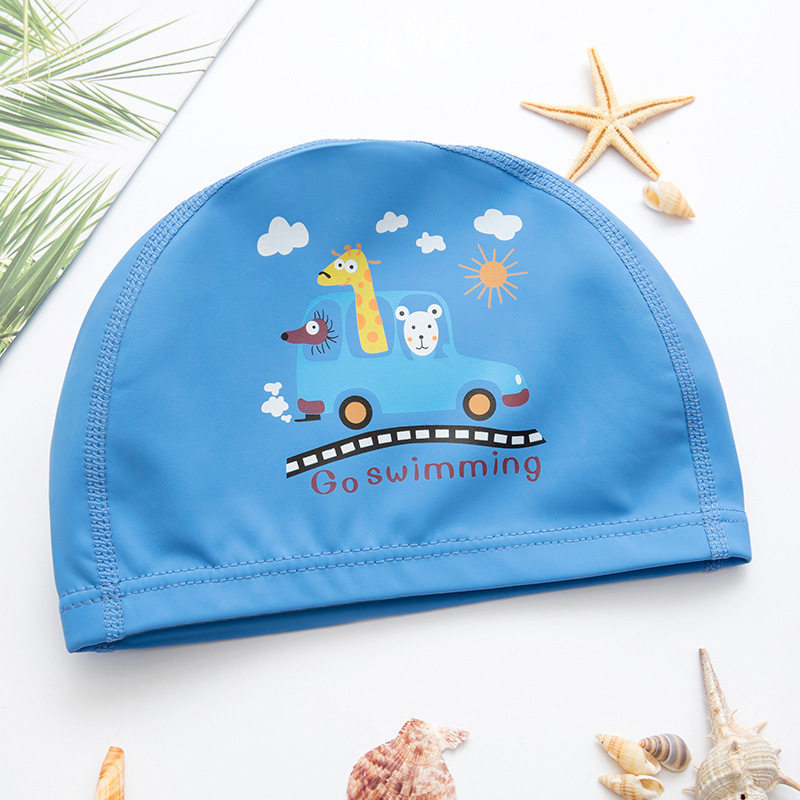 New children's swimming hat boy girl cute PU waterproof protective ear not ler head swimming cap baby swimming gear