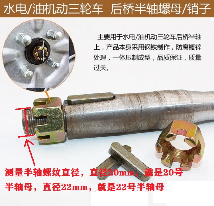Futian Zongshen Electric tricycle half shaft nut rear axle flower mother Dajiang 6 holes disc screw cap 2 groove key pin