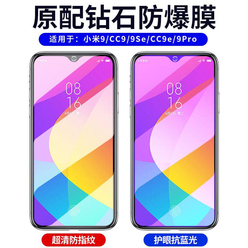Xiaomi 9 Tempered film CC9 Mobile Film 9se full screen covered 9Pro anti-fingerprint cc9e glass blue light mi HD anti-fall full-pack 9cc full-body screen protective film 5g meter 9