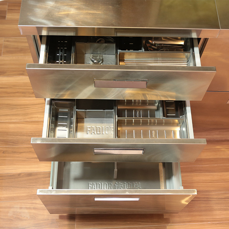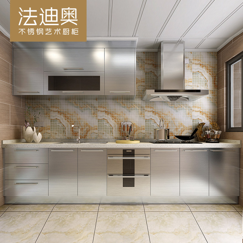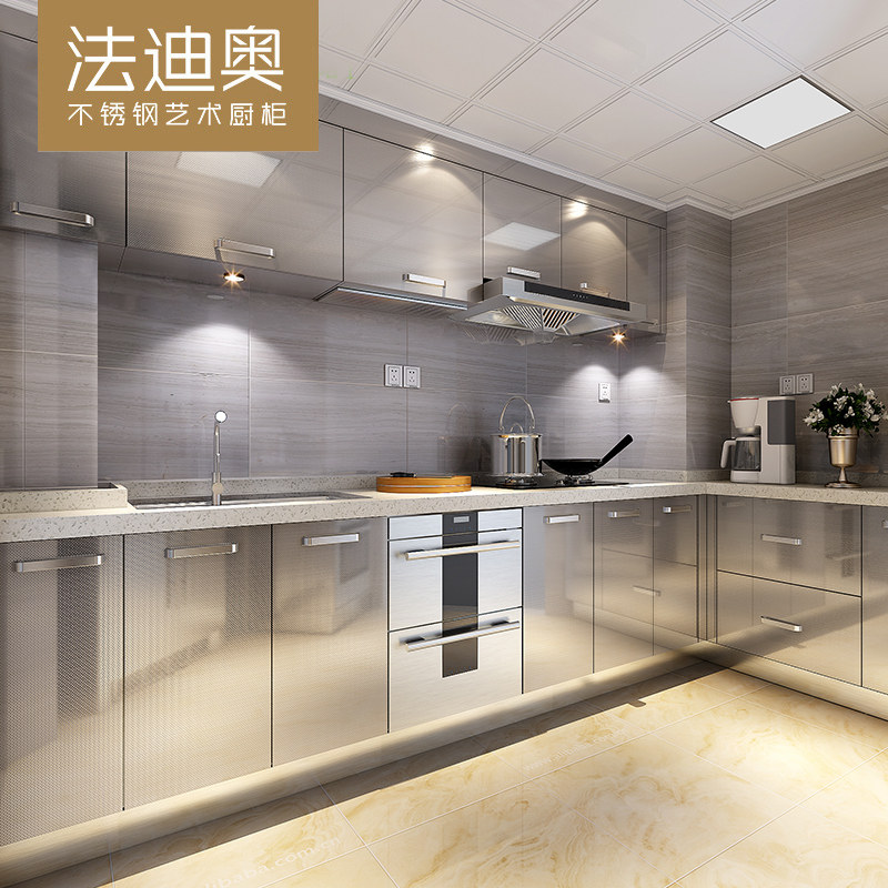 Fadio stainless steel overall cabinet kitchen custom whole? Simple open-ended all-room with quartz stone countertop
