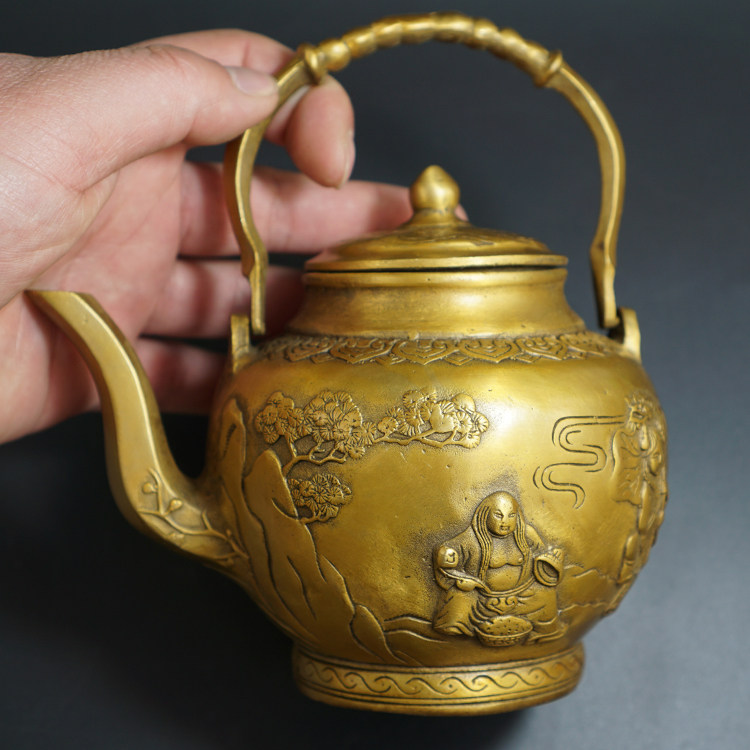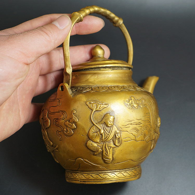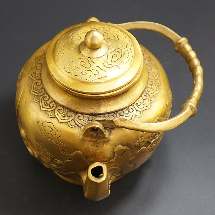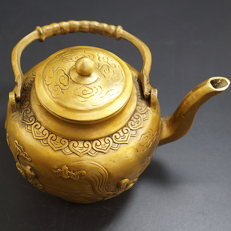 Antique and old antique copperware Brass silver-plated craft gift ornaments Dragon spit water Dragon handle pot