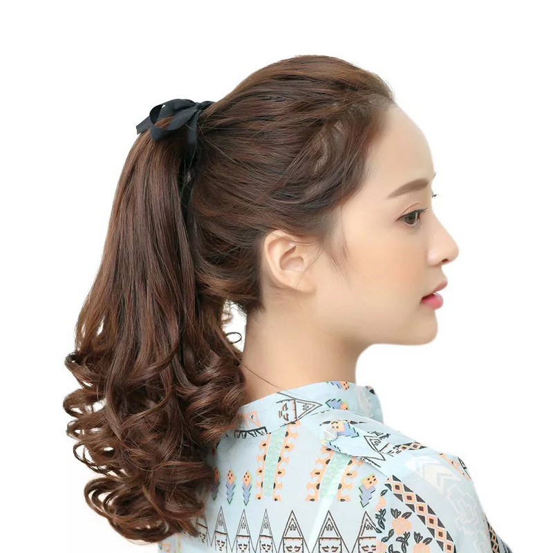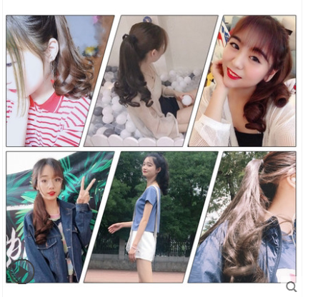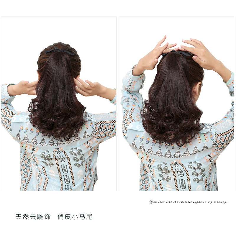 Real hair ponytail strap-type full real hair ponytail wig female long curly hair big wave pear flower ponytail braid