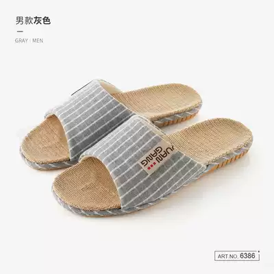 Linen slippers men's winter deodorant indoor sweat-absorbing home weaving office simple spring and autumn soft bottom women non-slip home