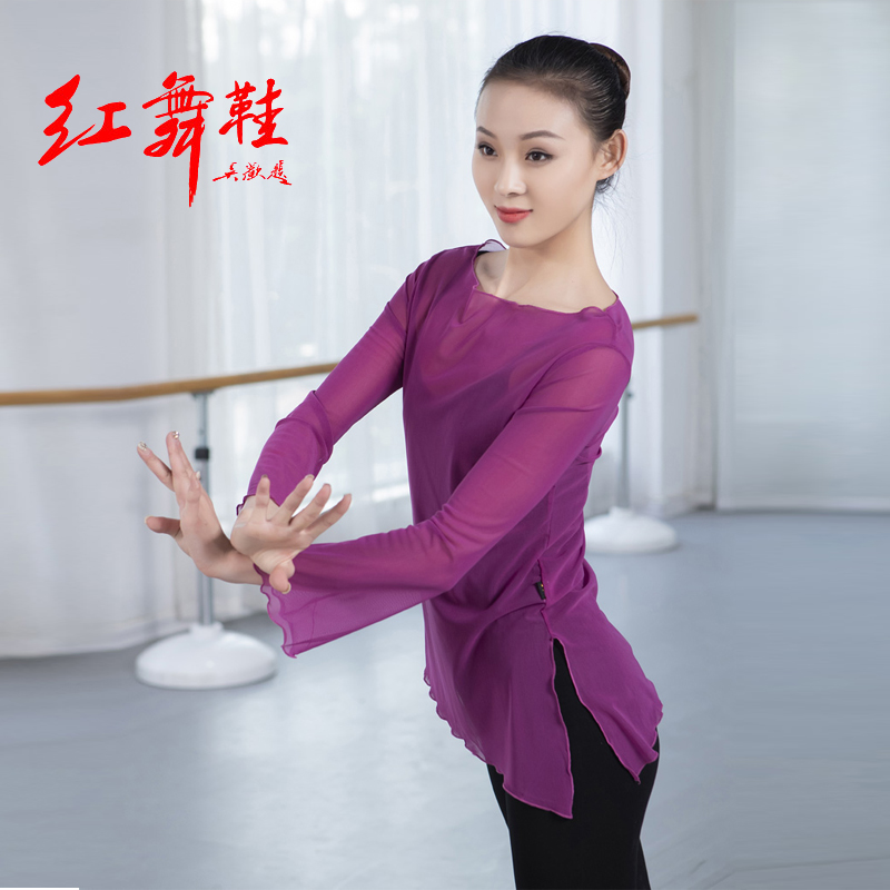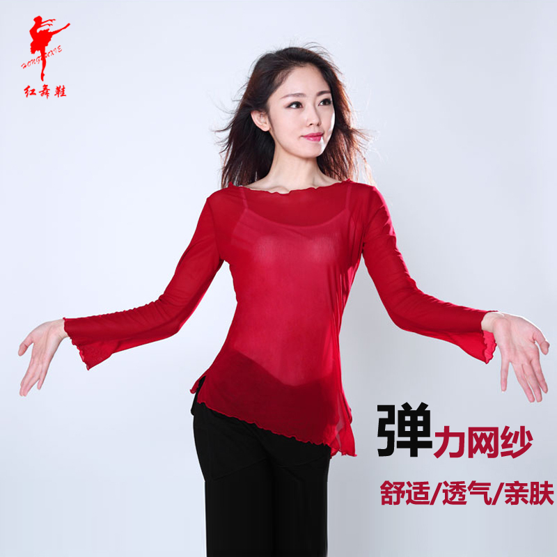 Red dance shoes dance practice clothes adult women's net gauze with bell sleeves ballet classical dance body rhyme gauze 39504