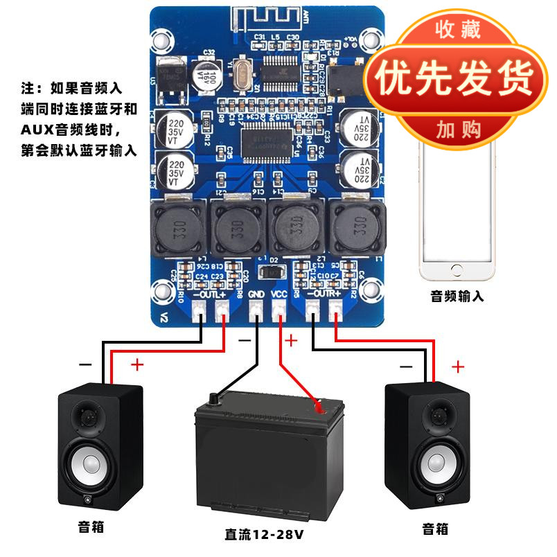 XH-M314 Ultra Clear Bluetooth Digital Power Amplifier Board TPA3118 Dual 45W Audio Amplifier Module AUX Decoding 12V
