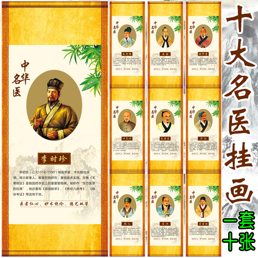 Ancient ten famous doctors portrait Sun Simiao Li Shizhen Bian Que Hua Tuo Chinese medicine health hanging painting clinic decoration portrait