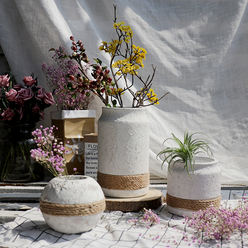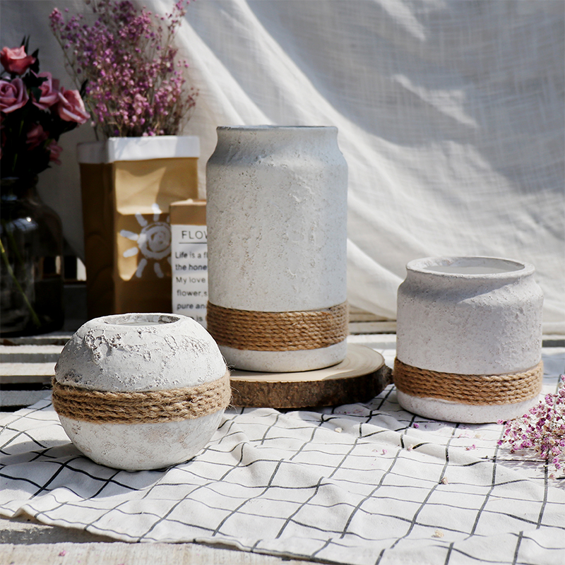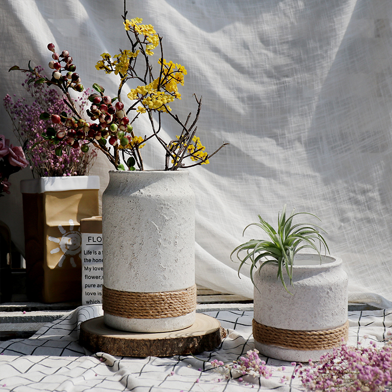 Nordic Wind Creativity Ceramic Floral Flower Pots Hemp Rope Decorative Living Room Home Balcony Garden Soft Dress Matching Green Plant