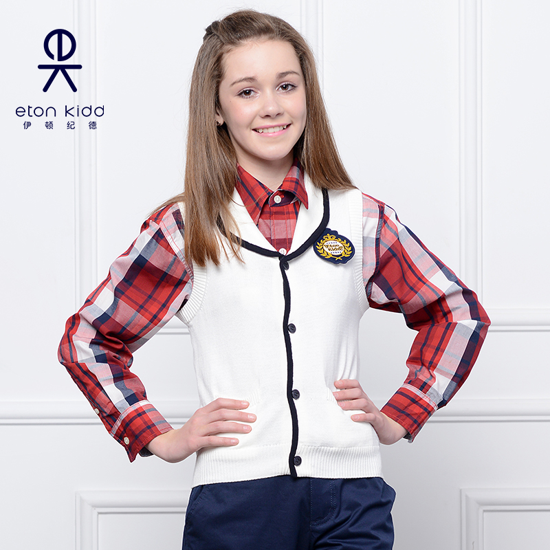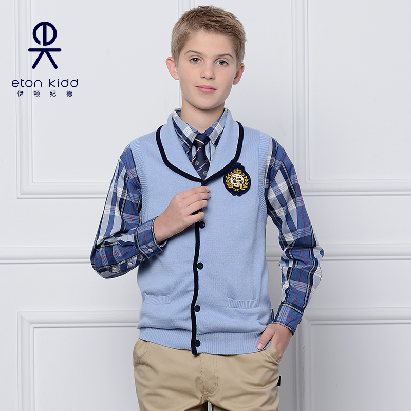 Eaton Guild children Inron knit vest male and female children full cotton round-turned vest 16C193