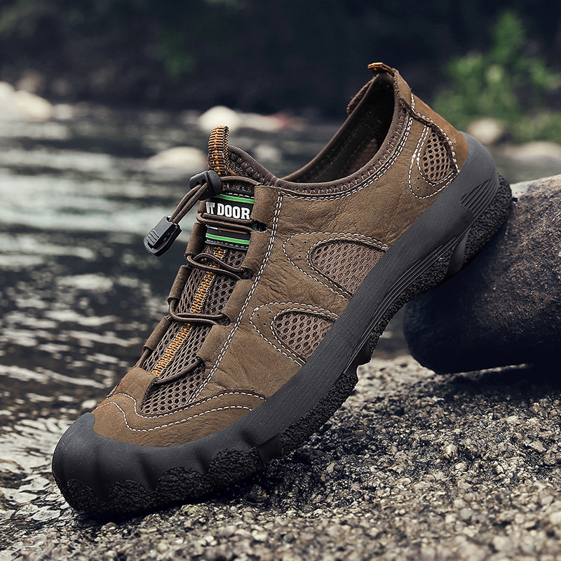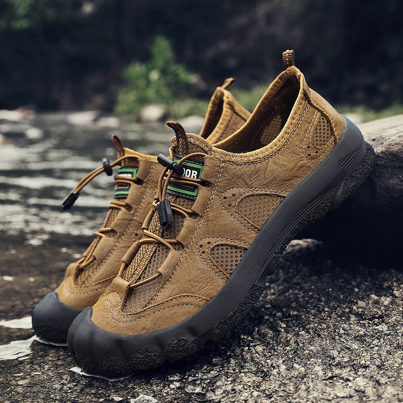 New Pint Camel Men's Shoes New Outdoor Bull Leather Net Face Breathable Casual Leather Shoes Sport Hiking Thick Bottom Anti Slip