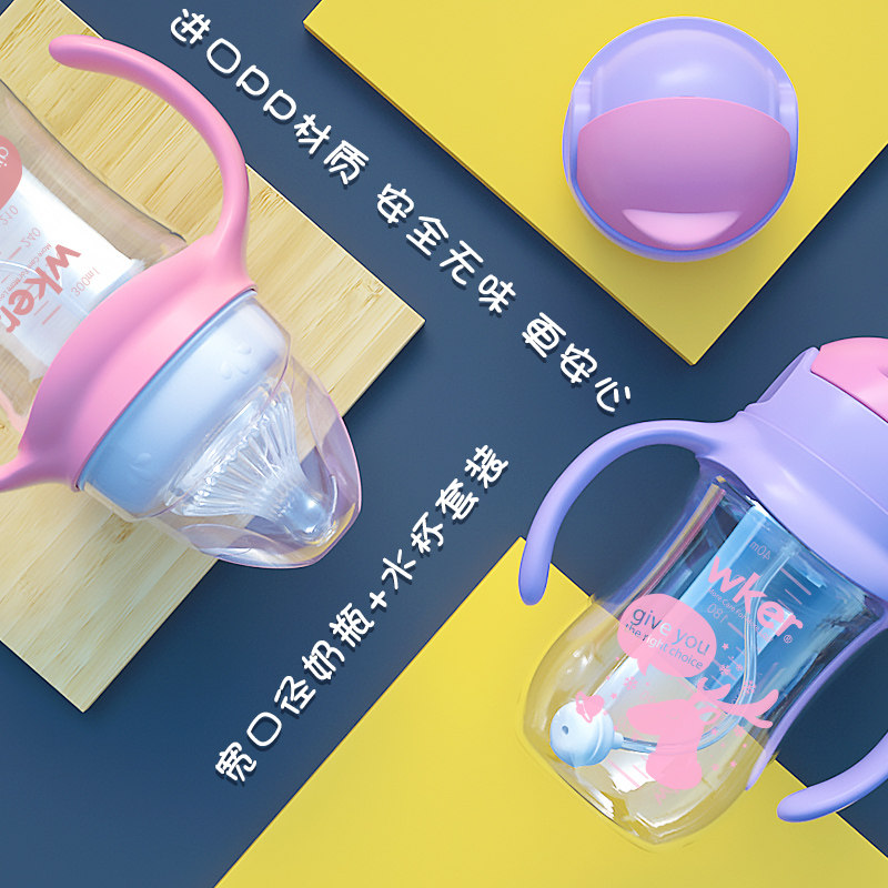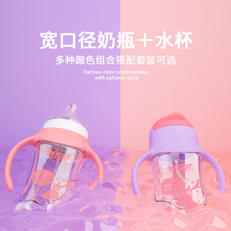 Anti-drop baby bottle straw cup set PP material wide caliber baby anti-flatulence straw water cup