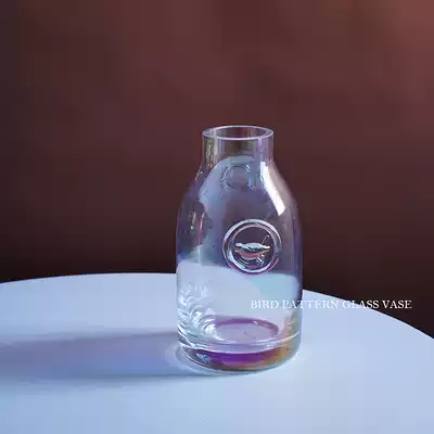 ins Nordic colorful rainbow dazzling bird stamp large caliber flower vase living room flower arrangement glass vase