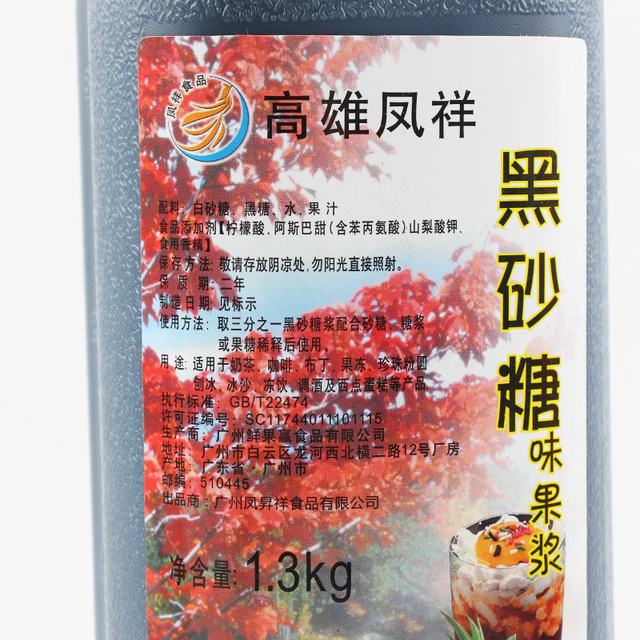 Kaohsiung Fengxiang Black Granulated Sugar Taste Fruit Pulp 1300g Drinks Seasoned Coffee Black Sugar Dirty Milk Tea Sweet with raw material