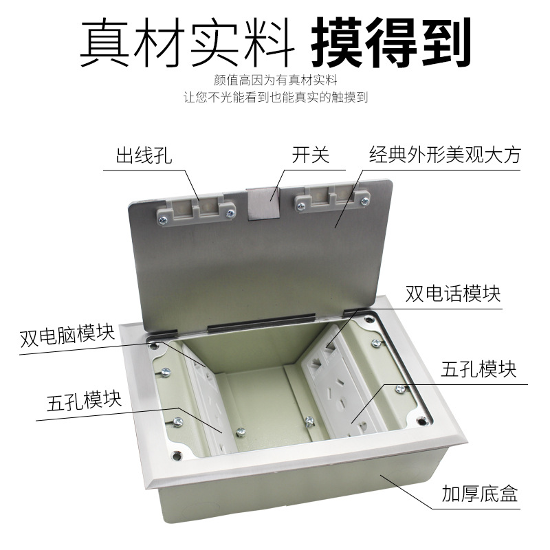 Stainless steel concealed ground plug Internet line interface multifunction five-hole phone computer multimedia waterproof ground floor socket