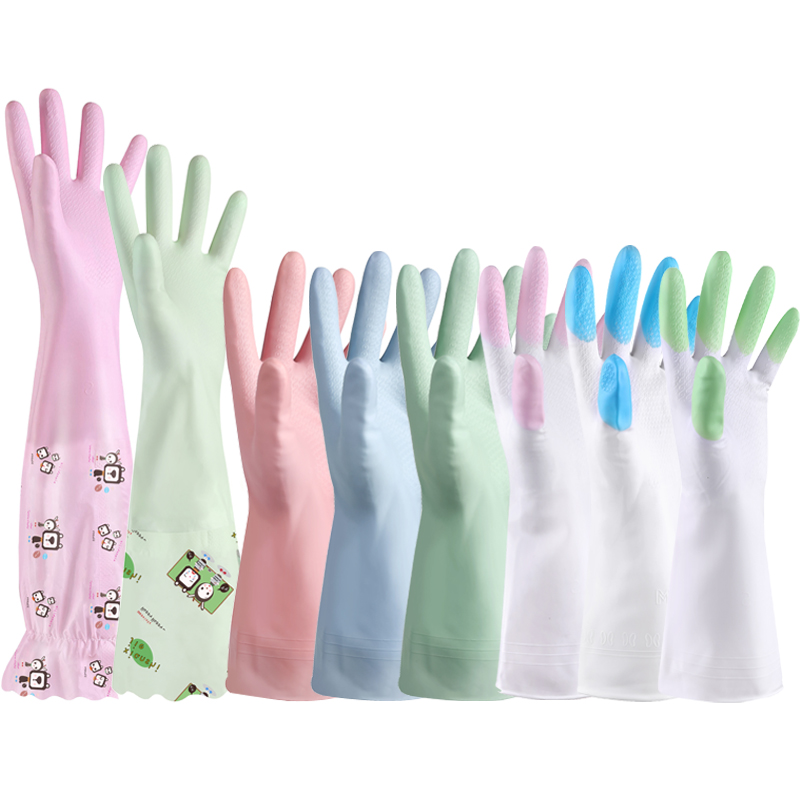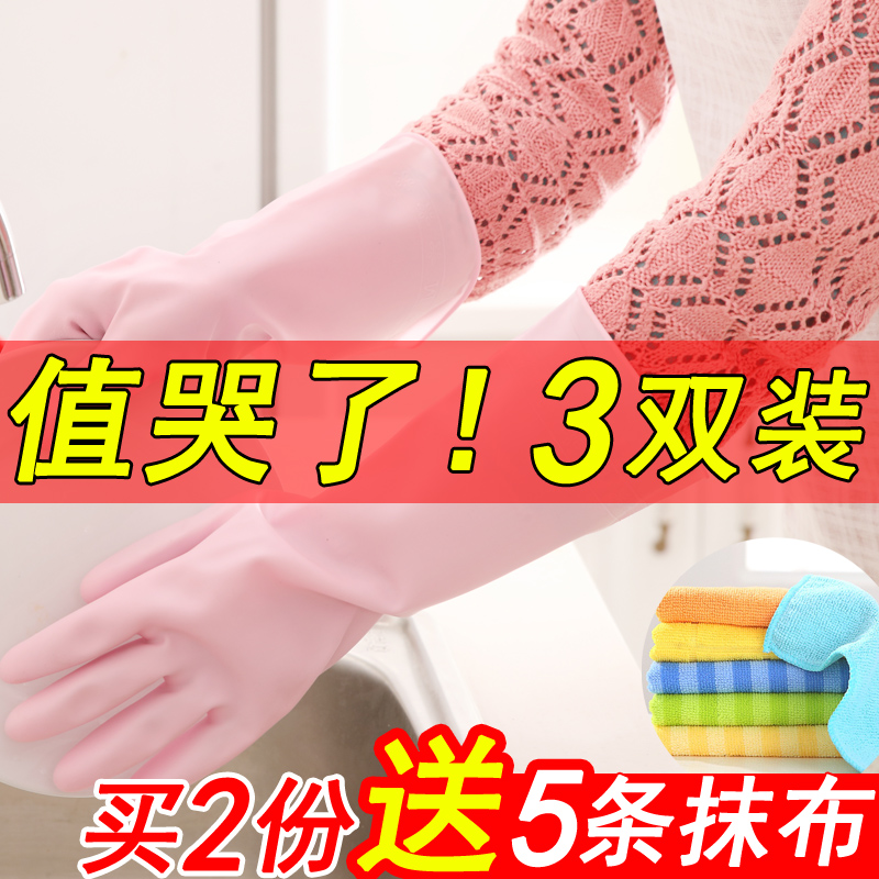 Dishwashing gloves Women's thin waterproof durable kitchen latex plastic household laundry clothes summer stick hand rubber