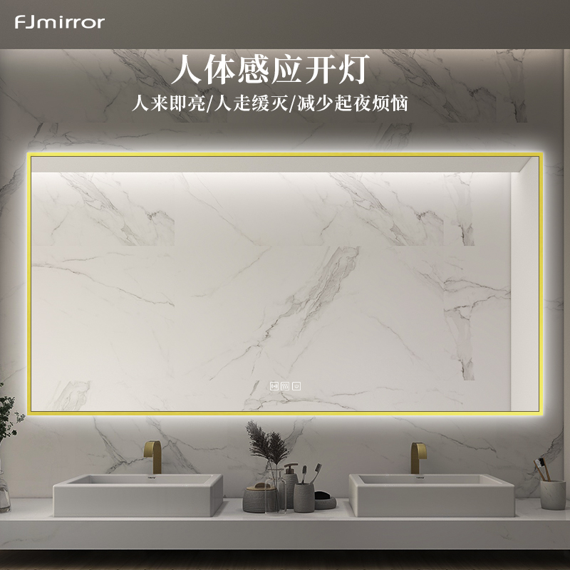 Light luxury smart mirror touch screen toilet toilet anti-fog mirror with light bathroom mirror LED makeup light mirror frame
