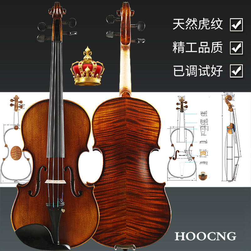 Haocheng violin Spruce wood panel Natural maple backboard Solid wood violin Professional performance test beginner