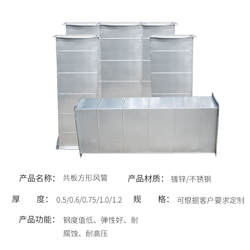 Square galvanized stainless steel white iron ventilation pipe basement exhaust pipe central air-conditioning exhaust smoke pipe