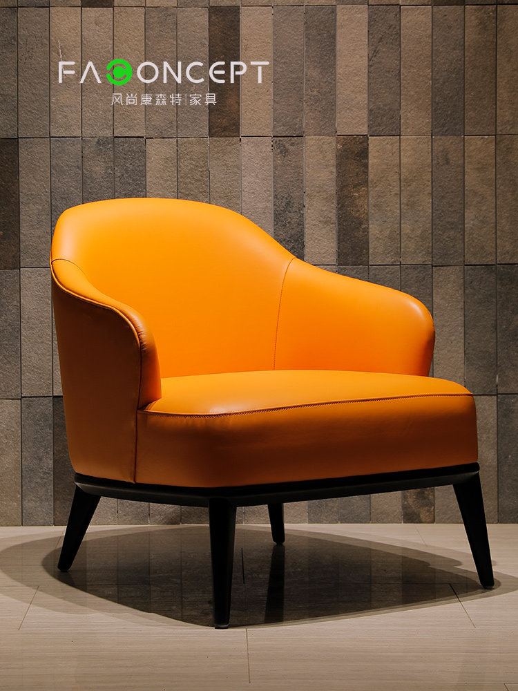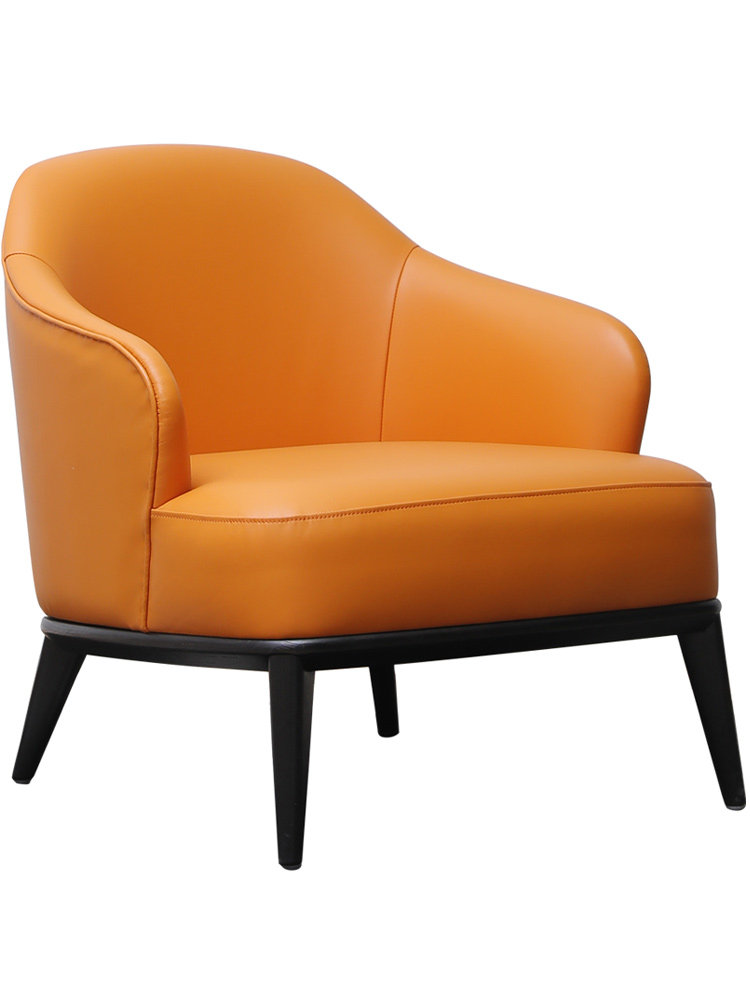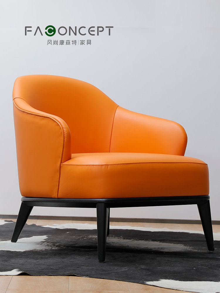 Nordic single solid wood sofa chair modern light luxury simple leather lazy retro people leisure chair living room bedroom balcony
