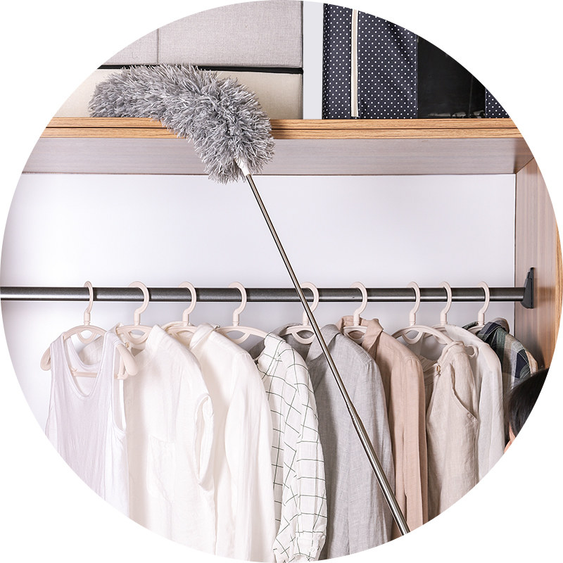 Retractable dust duster (up to 275cm for ceiling and other heights) Slit Telescopic dust duster(clean the bottom of the bed and other gaps under the sofa) Retractable ceiling dust duster replacement duster head
