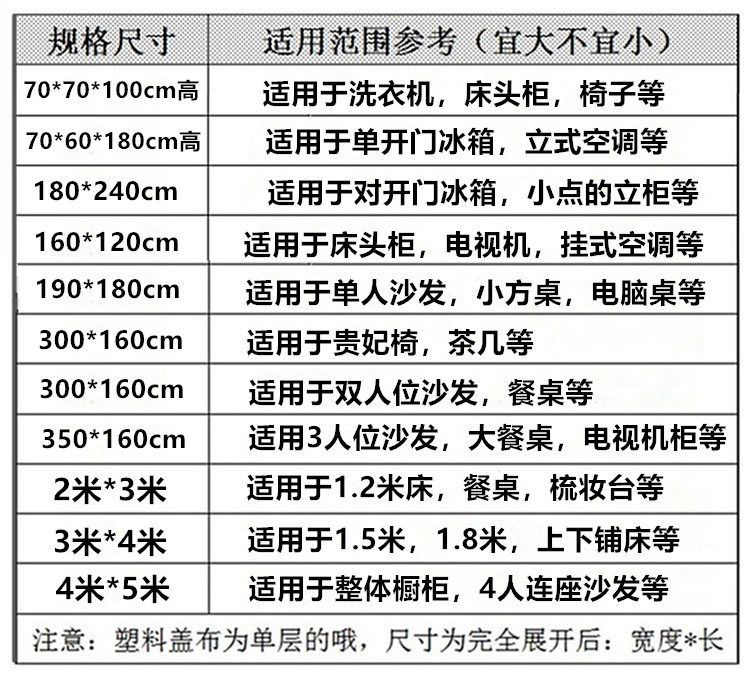 160 * 120 (2) cover chair bed head cabinet 70 * 70 * 100 (2 only) Washing machine dust cover 70 * 60 * 180 (1) Single door open door fridge cover thickened 180