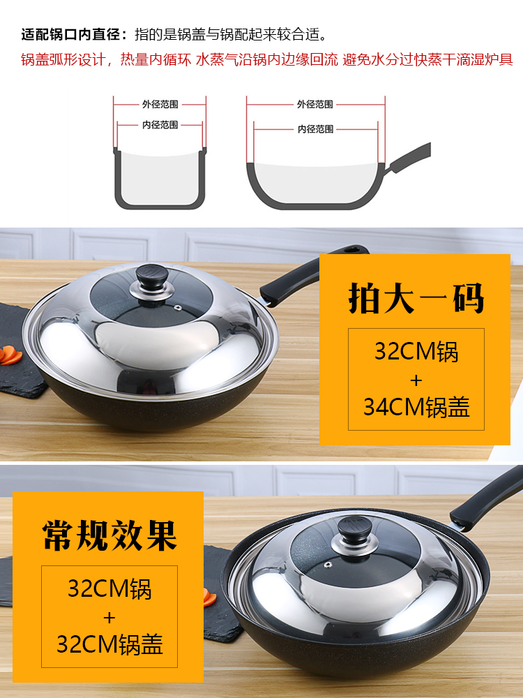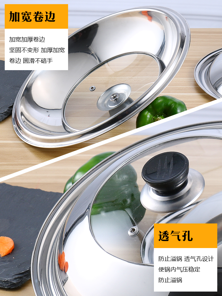 Stainless steel pot cover Household cooking pot wok All steel pot cover Universal vertical transparent pot cover glass cover 3234cm
