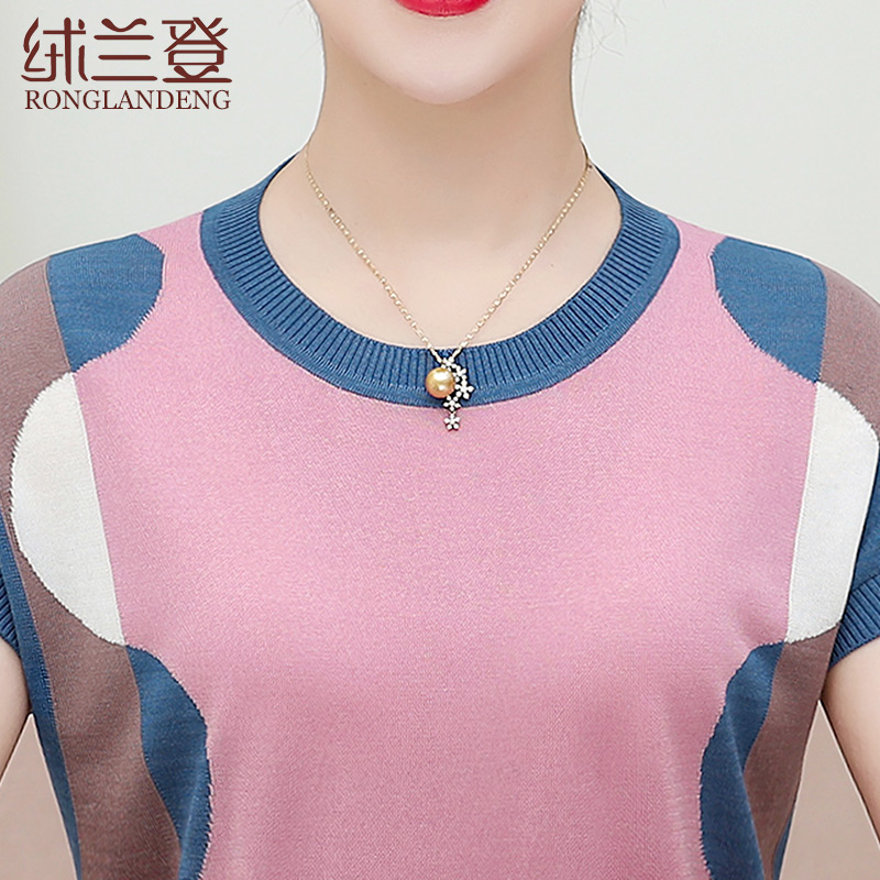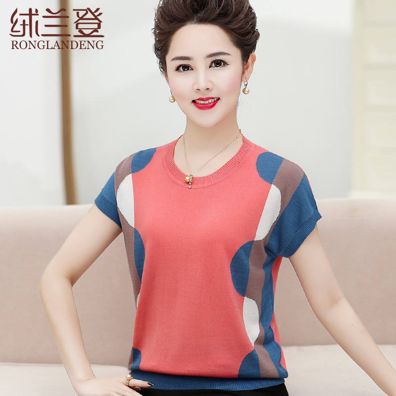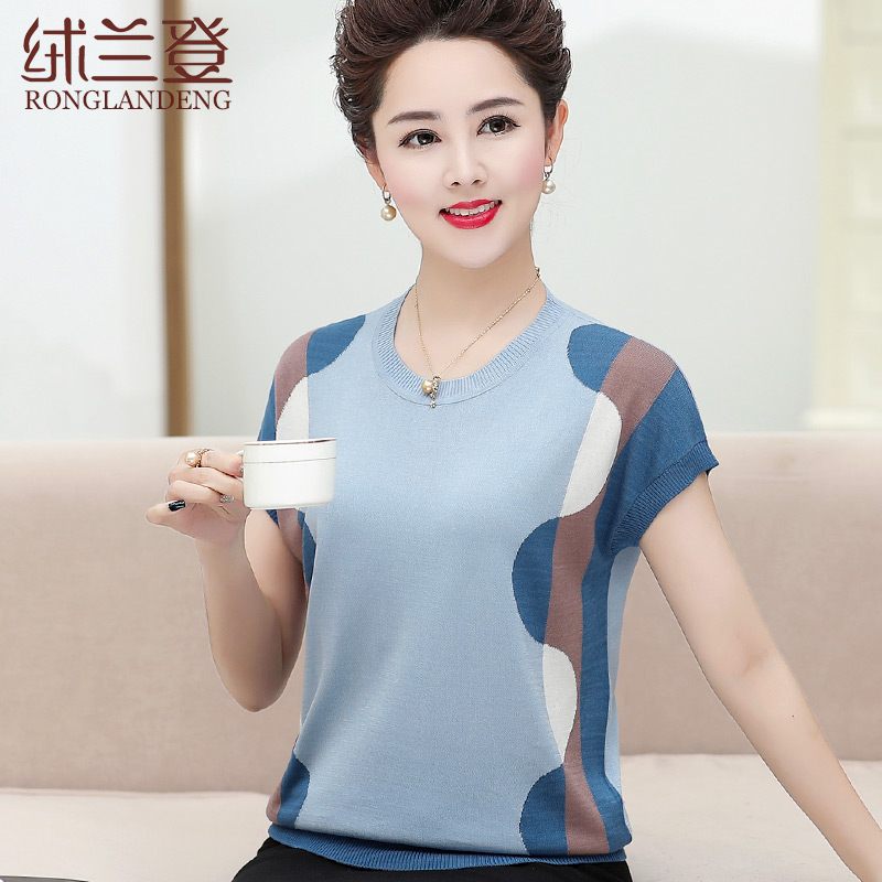 Middle-aged women's clothing ice silk T-shirts foreign pie Mother's Day Mom summer clothing short sleeves Knitted Sweatshirt Big Size Blouse 40-50