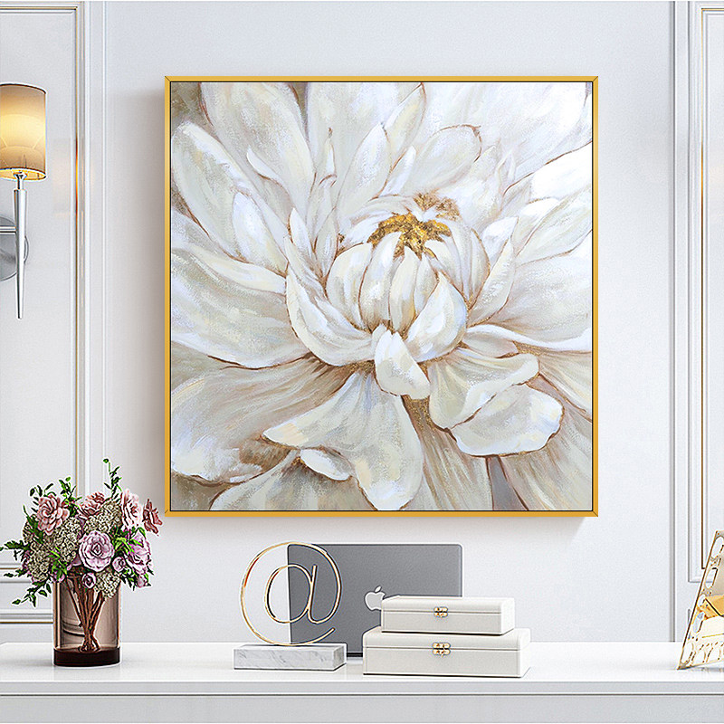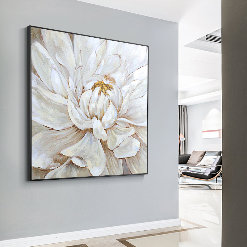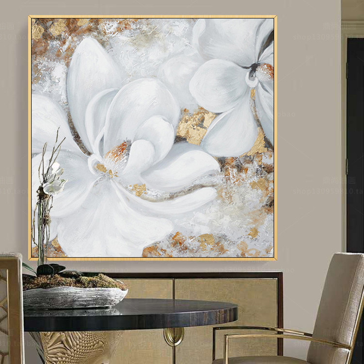 Doug pure hand-painted flower oil painting Modern gold leaf simple beauty Nordic style restaurant entrance corridor hanging painting decorative painting
