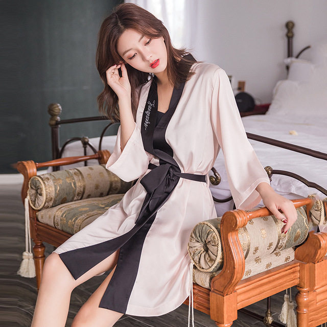 Spring and summer season ice silk girlfriends bathrobes Japanese style silk bridal bridesmaids bridal gown emulated silk sleeping robes feminine sensual bathrobe