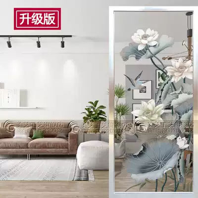 Art glass screen living room compartment decoration modern porch aisle frosted light transparent tempered glass painting lotus bird