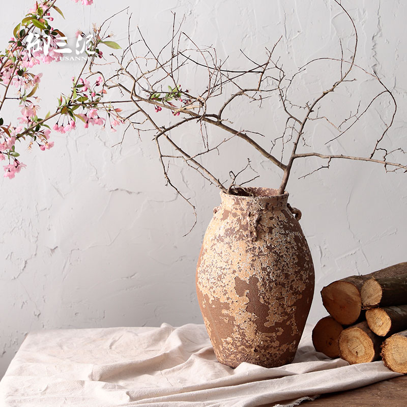 Handmade crude pottery pottery pot Jingdezhen pottery dry flower vase hand-made Japanese tea room Zen flower pot