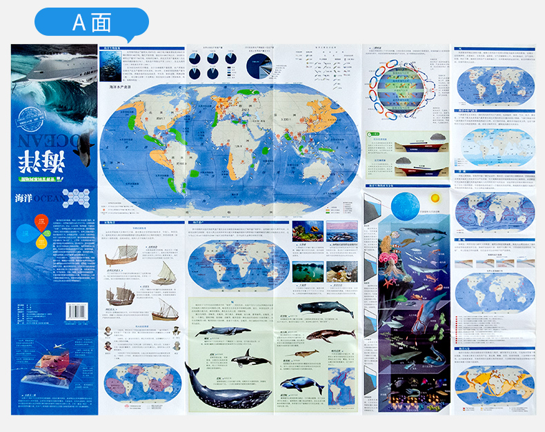 Ocean Knowledge Map Portable Fold version Double sided HD Content Rich Knowledge Point Ocean Charm Genuine out of the World Encyclopedia Series Map