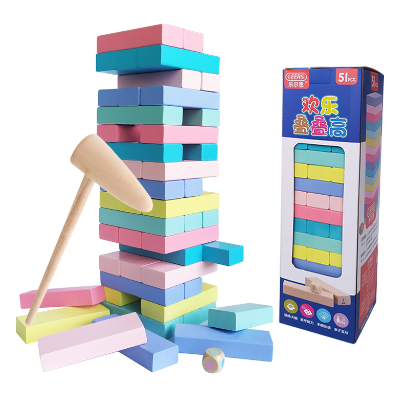 Children's version of the stack height (54 pieces) 4 dice 1 hammer storage bag Adult version of the stack height (54 pieces) 4 dice 1 hammer Storage bag Digital stack height storage