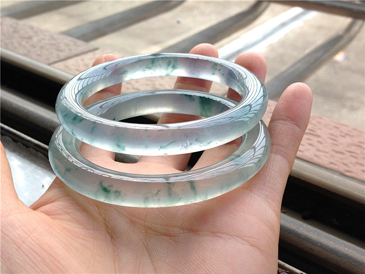 Natural Burmese ice round bar A freight emerald bracelet fluorescent jade bracelet full of green girls fed hot sell