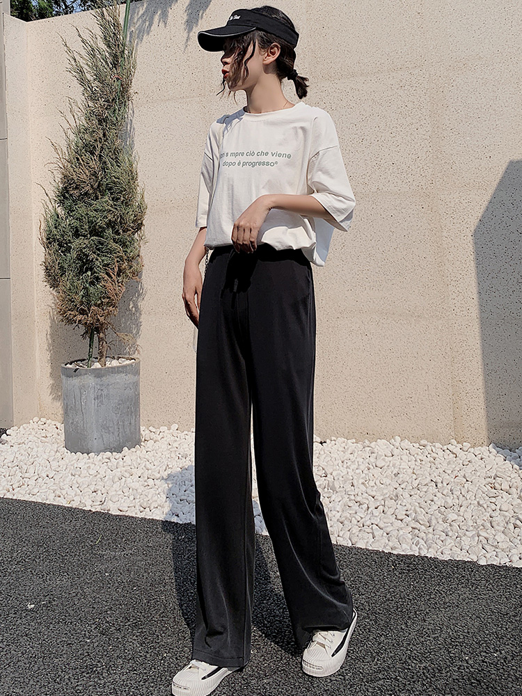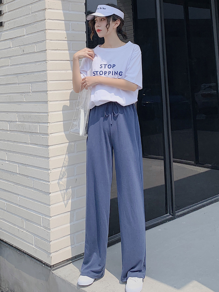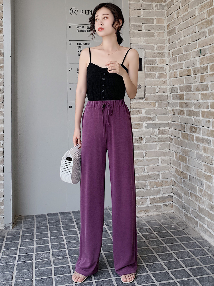 Cupro wide-leg pants women's spring, autumn and summer 2021 new ice silk high waist drape straight tube drop elastic waist mopping pants