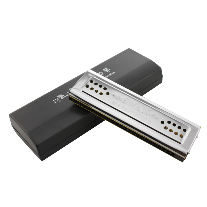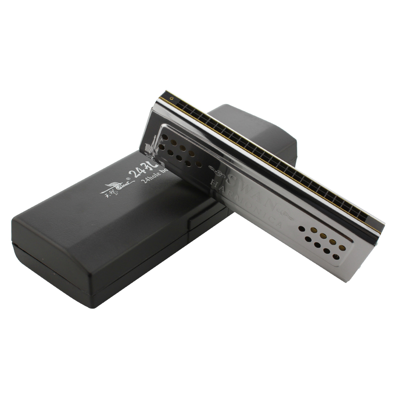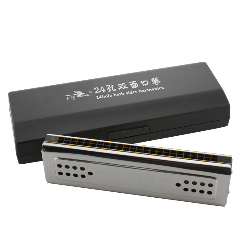 Swan SWAN 24 holes double face double tone harmonica C G tone black plastic case side C side G tone