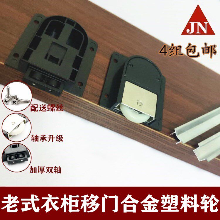 Vintage wardrobe door roller Sliding door wheel Push-pull sliding door roller Black plastic integral cabinet door hanging wheel Slide accessories