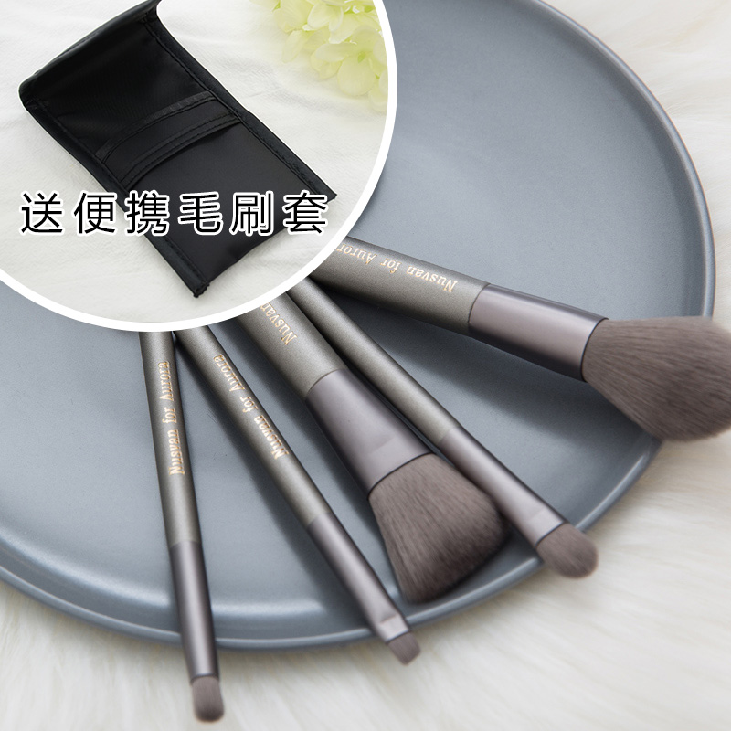 Nusvan mini animal hair set eyebrow brush eye shadow brush contouring portable beginner makeup brush band bag